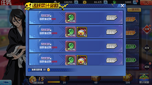 5、活跃累计奖励,每日完成任务即可领取大量魂玉。