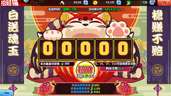 3、招财猫活动,白送魂玉,稳赚不亏。