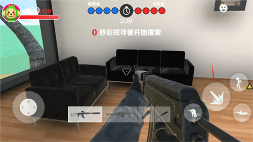 8、而寻找者就是找到藏在房间内的所有躲藏者,寻找中有武器,利用手中的武器对着可疑的物品进行射击。