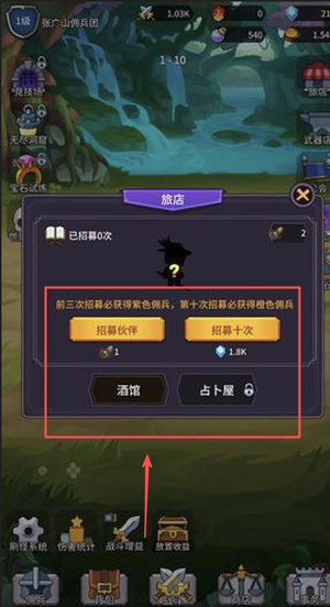 1、进入游戏后通过旅馆抽取角色,前期建议集中使用抽卡资源获取强力传说英雄。