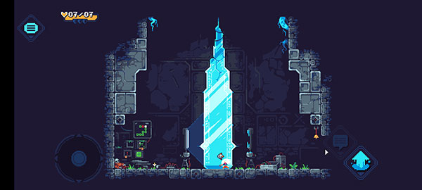 4、左侧轮盘可以控制角色移动,右侧点击向上的箭头可以跳跃,长按就会跳的更高。