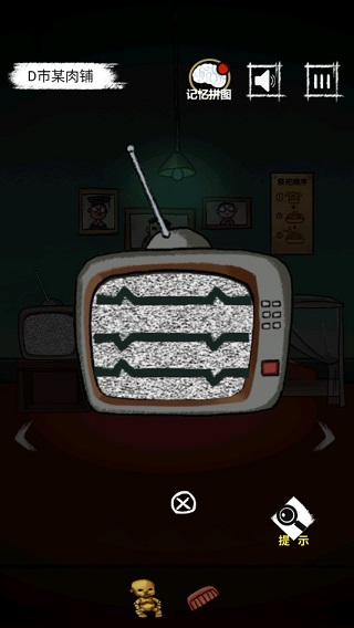 然后往右走在冰箱里面拿到猪头左边的柜子里拿到半边天线,继续往右走在电视柜下面拿到一把刀