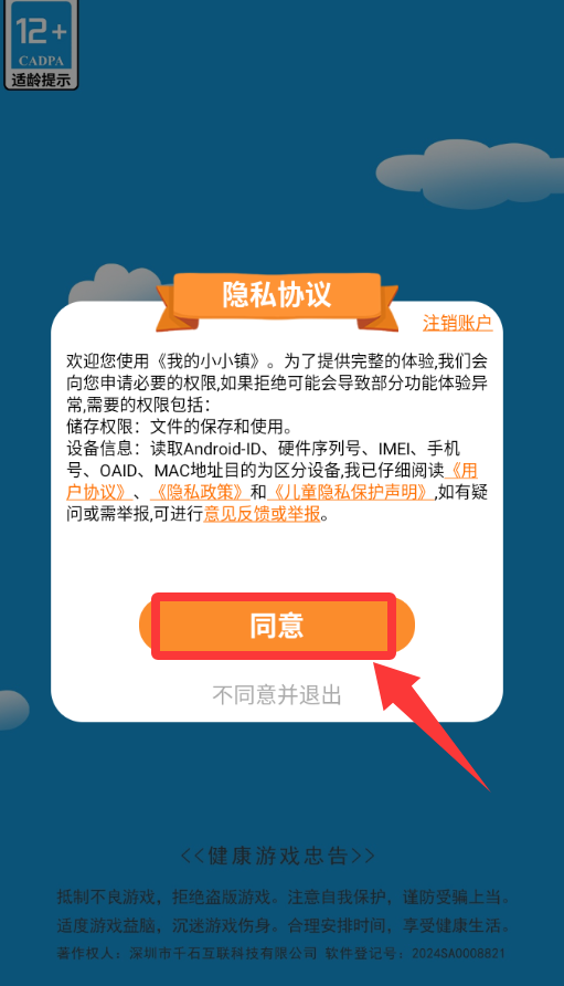 1、点击隐私协议里的同意并继续。