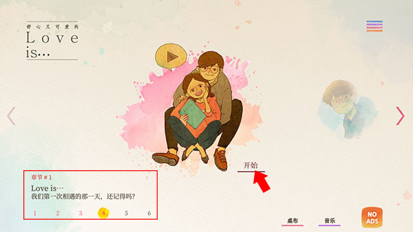 2、进入章节选取界面,在左下角选取章节后点击【开始】即可进入相应关卡