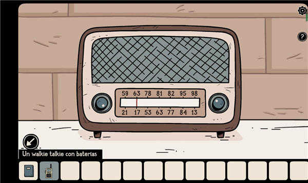 4、在白色门右边的抽屉柜里拿到两节「电池」,先把电池装进对讲机,然后将频道调到4听对讲机里播放的音乐,再点击收音机调整频道至你所听到的音乐频道上(这里要记住频道数字,不同音乐对应不同的频道)。注:组合物品:选择道具-Grab-选择要组合的道具,另外收音机右下方的抽屉里还有一个密码符号。