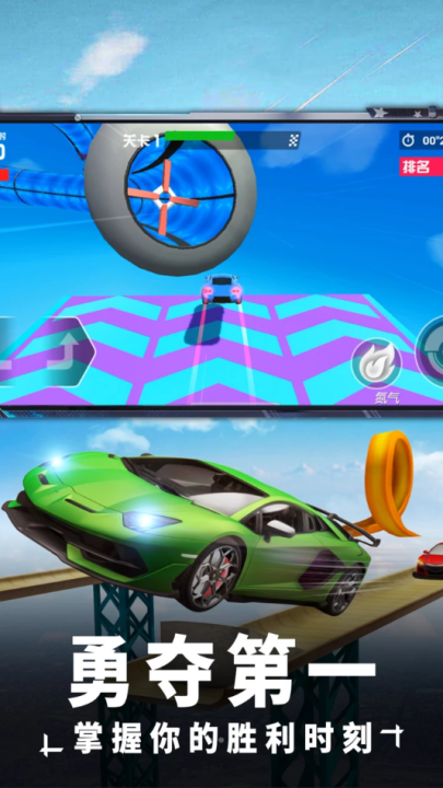 2、超越你的竞争对手,勇登榜首,赢取更多奖励解锁更多赛车。