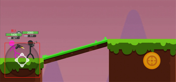 3、玩家可以通过左下角的摇杆来控制开枪的角度;