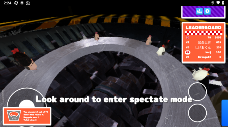 鸡块大逃杀游戏(Nugget Royale)是一款多人大逃杀游戏,主角是工厂化农场里的鸡。80名鸡玩家争夺最后一个站在可怕的研磨机上方不稳定圆盘上的玩家。圆盘上最后一个站着的玩家不会被变成鸡块。成为排行榜第一名,你将获得一顶金色王冠作为奖励。只有一名玩家可以戴上王冠,也就是鸡之王。鸡块大逃杀游戏有超过 40 顶可解锁的帽子。帽子可以通过在特定关卡中获胜或获得鸡块数量来解锁。收集鸡块可以解锁新的帽子,例如遮阳帽、番茄酱帽、炸篮和饮水盖。收集所有帽子,向其他玩家展示吧!