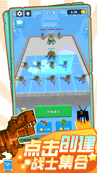 2、准备好运用战术,合并恐龙、合并怪物、火柴人战士和弓箭手,创造出新的战士来对抗敌军。在与其他军队和工艺恐龙战斗之前,打造强大的军队。派遣战士加入战斗,击败所有敌人。