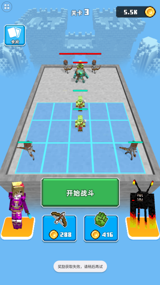 3、合并匹配的部队以升级并造成额外伤害,但要小心——合并是随机的,可能会改变你的部队类型!闲置时收集卡牌,运用战术合并来击败一大群对手。