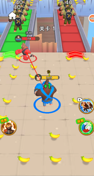 1、收集香蕉:战斗到最后一刻获取胜利。
