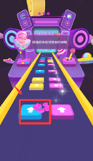 3、注意踩错颜色后球就会破碎。