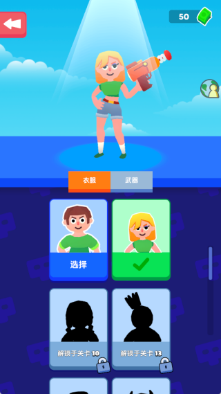 1、通过成功完成关卡获得奖励,可以解锁拥有不同外观的新角色皮肤,以及更具威力的新武器。