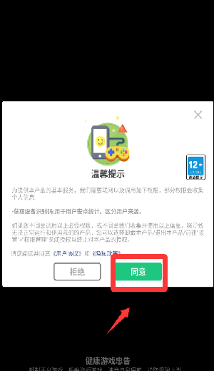 1、点击温馨提示里的同意并继续。