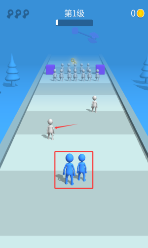2、控制红框蓝色角色,集合灰色推进关卡。
