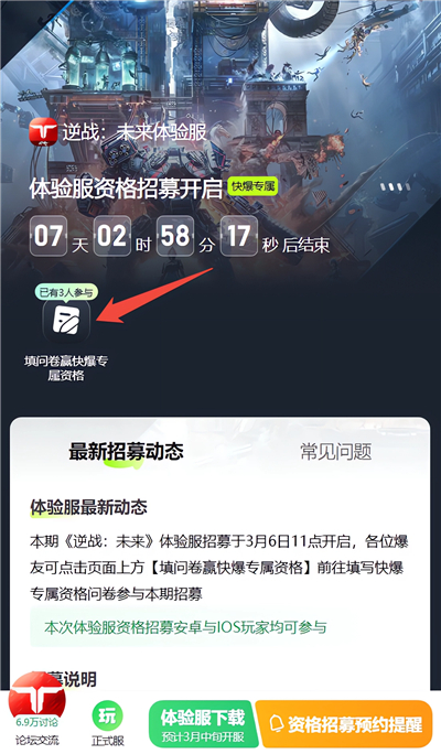 3、以上是本站本站带来的逆转未来体验服怎么查询是否获得资格,这个方法仅适用于参与快爆专属招募活动的玩家。