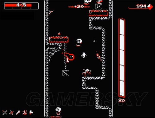 坠落深井(Downwell)的困难模式一般分为两大流派,一个是喷射鞋COMBO流,一个是刀叉流。