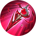 切换远近模式。 近战普攻:附带敌方4%已损生命的物理伤害,吸取50/70/90/110/130/150(+0.80)点额外物理伤害的血量。(对非英雄减半) 远程普攻:每次普攻将消耗4%当前生命(吸血无效)并造成40/57/74/91/108/125 (+0.80)点物理伤害,对目标单位形成血印,停留6秒。 解除远程状态:将所有目标身上的血印唤回指定位置,对沿途的敌人造成65/87/109/131/153/175(+0.65)点额外物理伤害,在终点爆炸并造成88/116/144/172/200/228 (+0.88)点额外物理伤害。若唤回自身每层血印恢复5%已损生命。