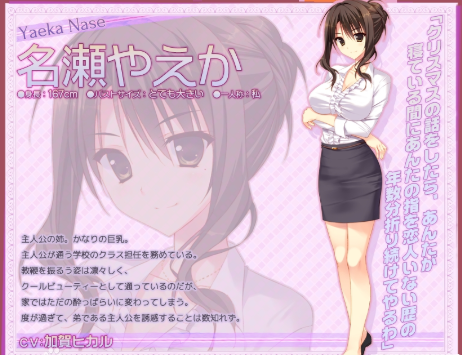 《圣域》系列的最后一作,标题中的“学校”暗示了两名女主和阳平的关系,分别是老师和同学,也展现了与前两作女主截然不同的萌点。作为收官之作,《学校的圣域》采用了不同以往的全新风格,剧情被压缩得更加严重了,不过试听体验依旧出众,实用度自然也不必担心。