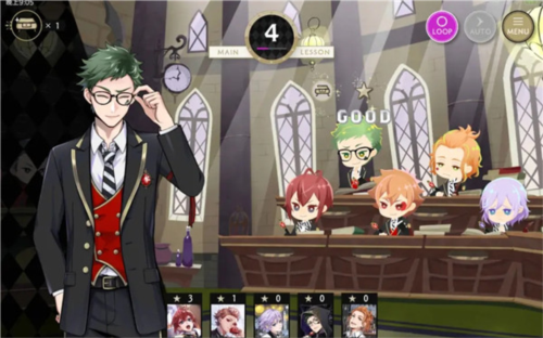 节奏玩法里,你需要跟着音乐点击跳动的音符来得分,同时还能看到Q版角色的动作和角色之间的有趣对话。