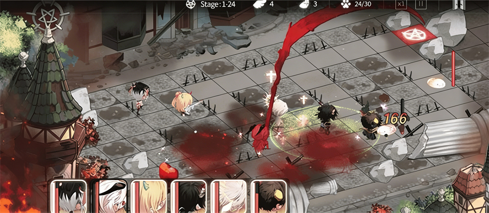 在战斗开始前,你需要选择角色加入战场,最多可以放置6名恶魔来对抗天使。(OS:战斗玩法像是升级版植物大战僵尸)