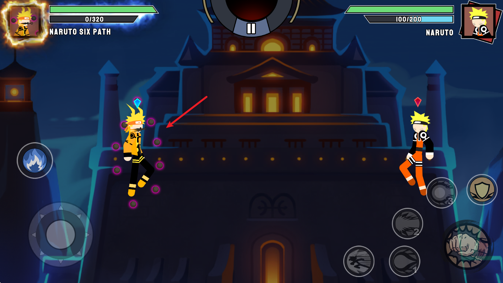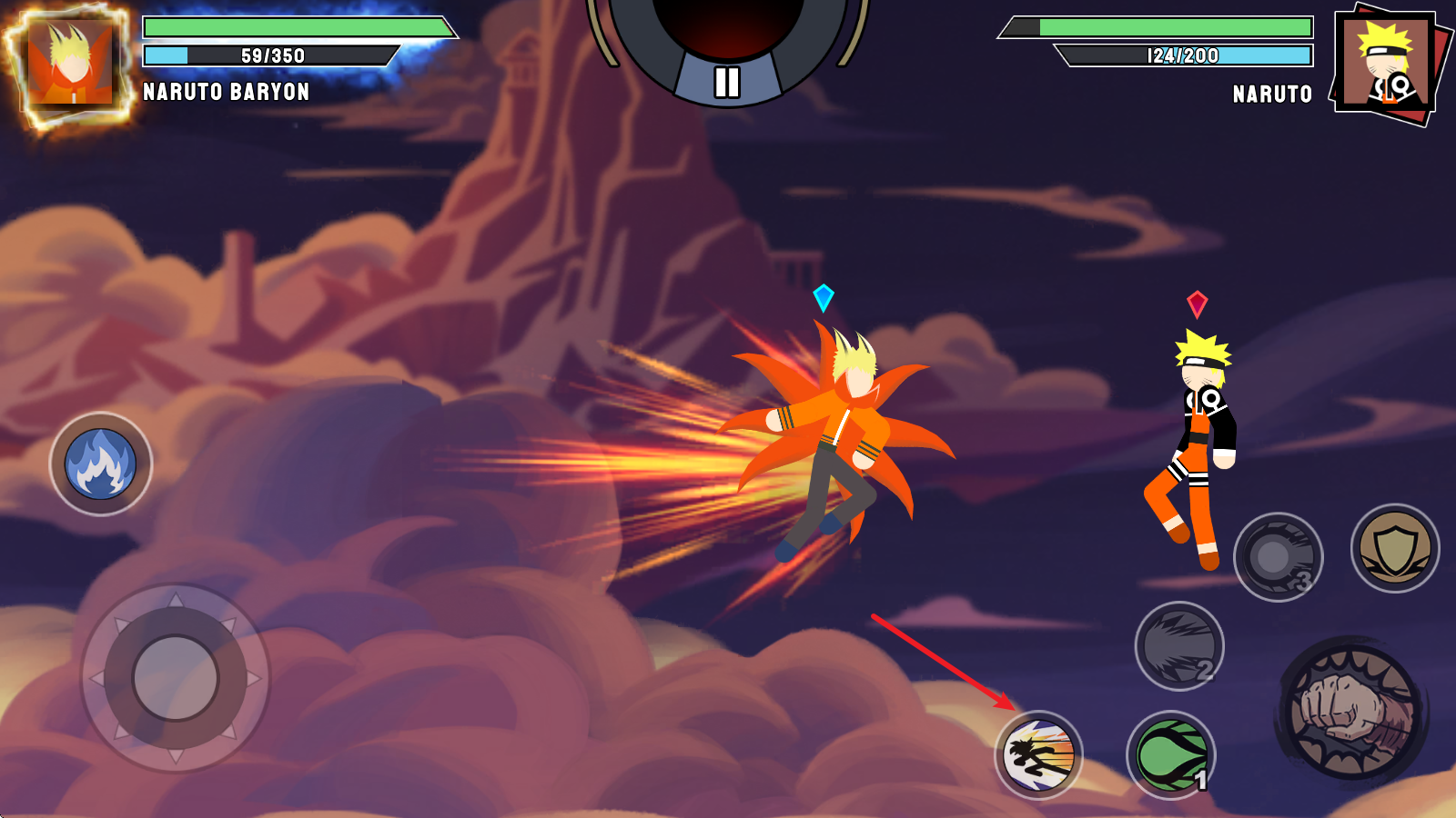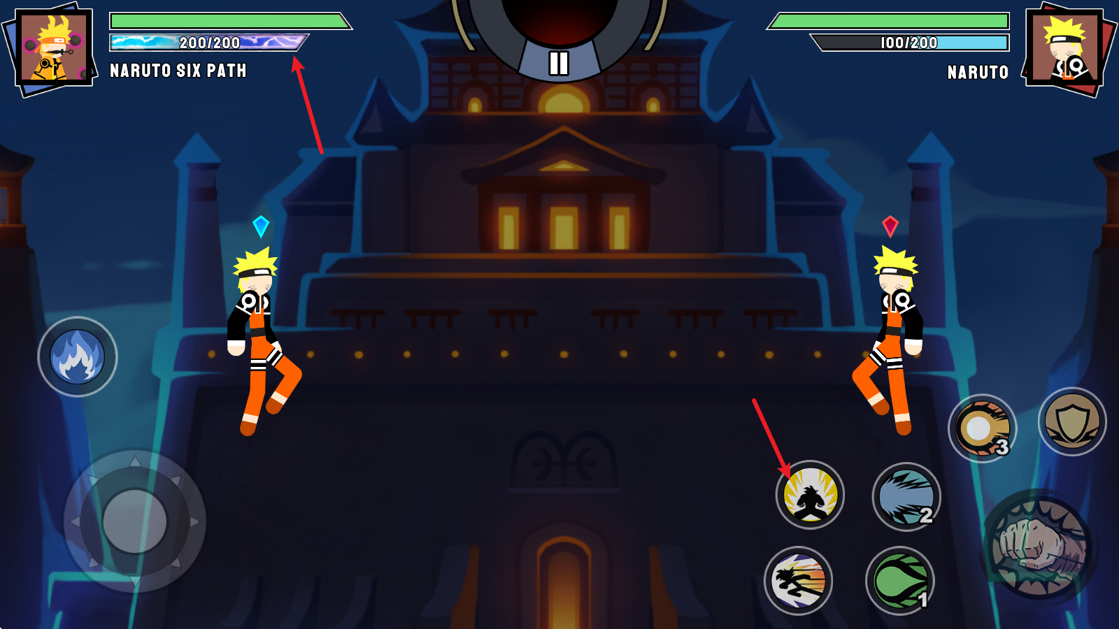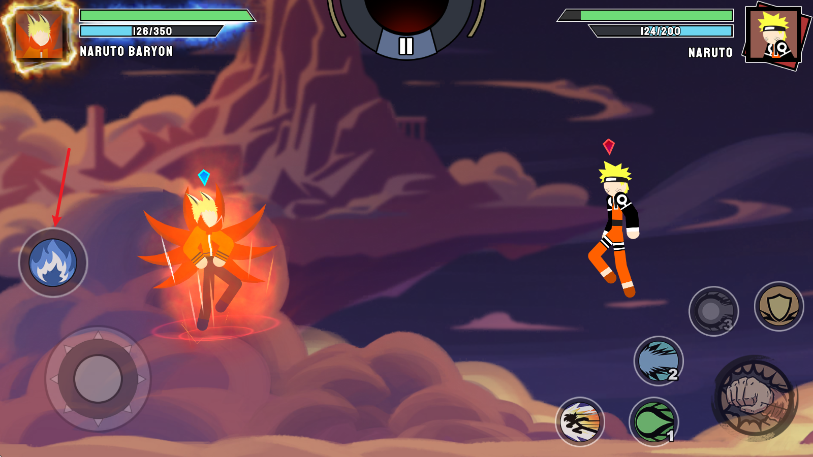 2、点击左侧的蓄力键,我们可以积攒自己的查克拉,查克拉是我们释放技能的重要能量。