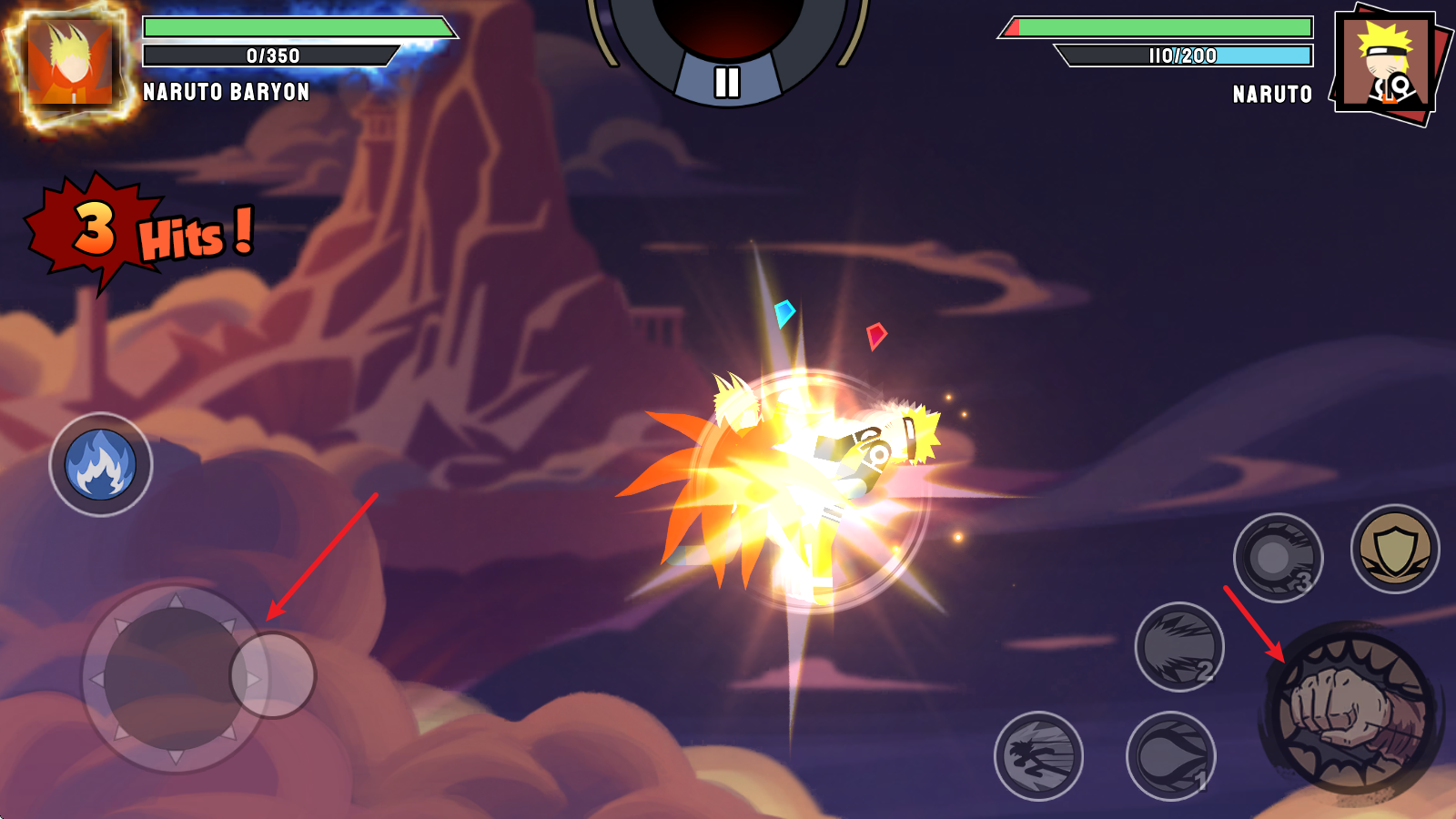 1、游戏中,左侧的摇杆控制角色移动,右侧拳头则是普通攻击。