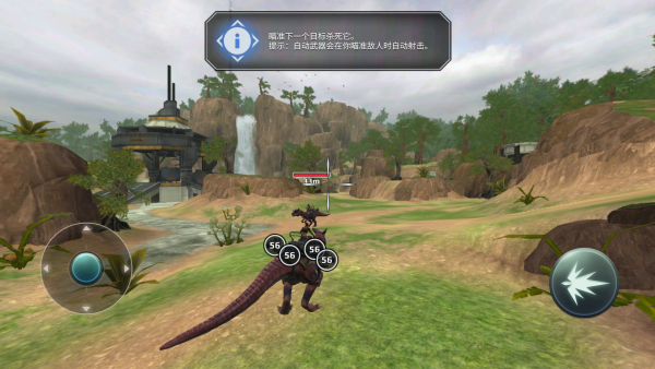 3、虚拟摇杆的操作模式能让你控制恐龙进行一系列的复杂战斗操作,还能滑动让你360度的查看各个方位。