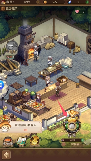 3、点击接客可以让客人来旅店消费,从而获取收益