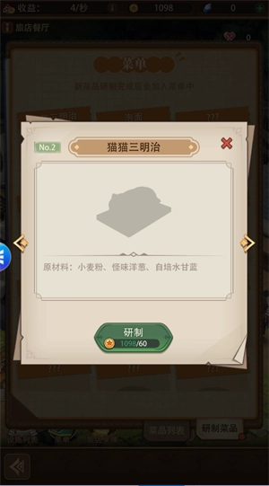 4、我们可以通过消耗金币来获取新的菜谱食材