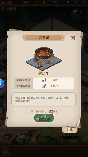 5、也可以消耗金币来升级厨具,已做出更好的菜品