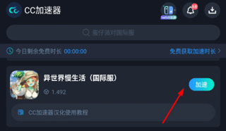 1、本游戏需要加速器,请自行在本站搜索“加速器”进行下载(任意均可,看的顺眼就行),如手机上已有加速器,请打开,在加速器内找到异世界慢生活游戏;