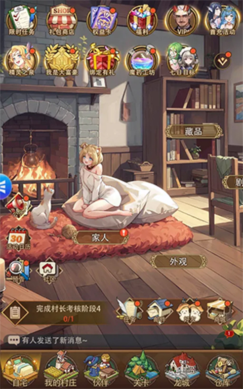 4、每次互动和任务都可以获得金币,用于购买装饰和升级建筑哦;