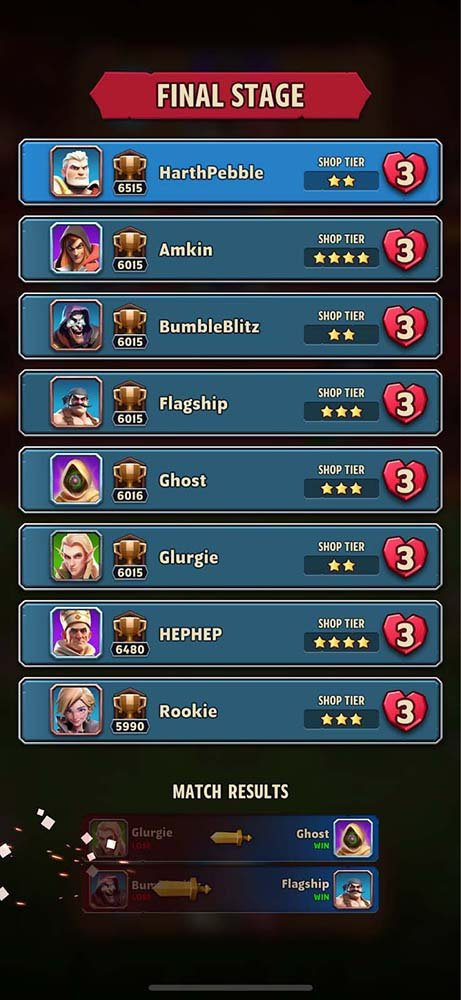 在决赛阶段,所有玩家都以 3 颗红心开始。