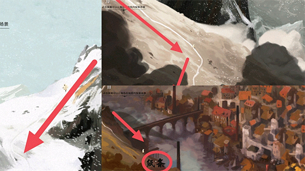 1、这关只需一直顺着山道往下走就可以了,中间有许多的折转,算是一个福利采景的章节,一直到最后看见小纸条飞过来点开它,过完剧情后就开启下一章节