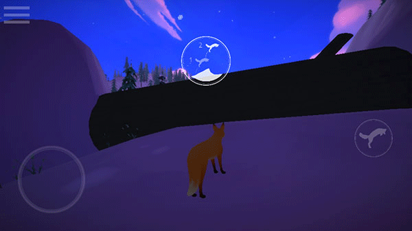2、游戏采用横版移动操作,左侧隐形轮盘移动狐狸,右侧可以互动、跳跃、移动镜头,点击继续;