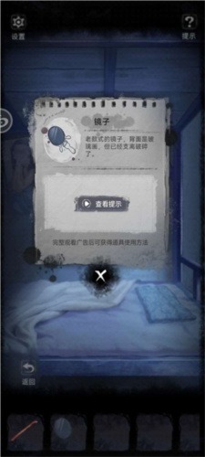 4、点击门,发现门无法打开,这时点击床铺,将墙上的镜子拿下来。