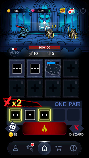 2、英雄与技能:解锁多位英雄(战士、游侠、死灵法师),每位拥有专属技能(如重掷特定骰子、转化骰面)。