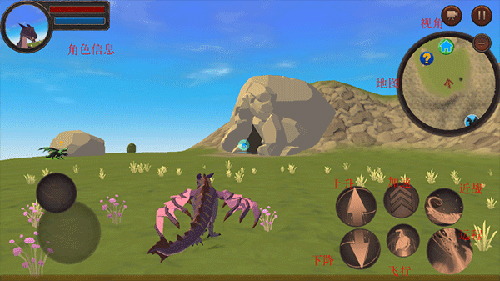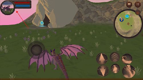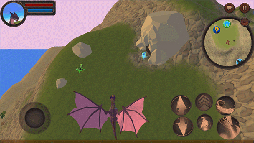 3、进入这个世界内,左下角可以控制龙自由移动,右下角是部分技能按钮,近战、远程、加速、以及飞翔等,加速需要搭配左下角一起使用,龙会更快地移动。