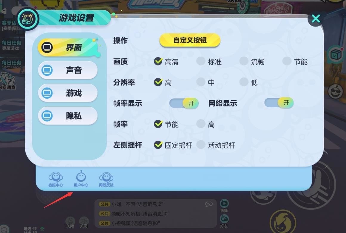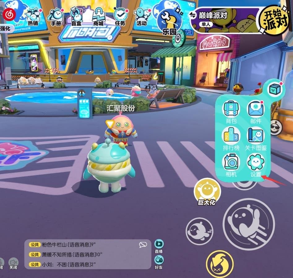 打开蛋仔派对后,点击右上角的礼盒图标,在出现的弹窗中,点击“设置”;