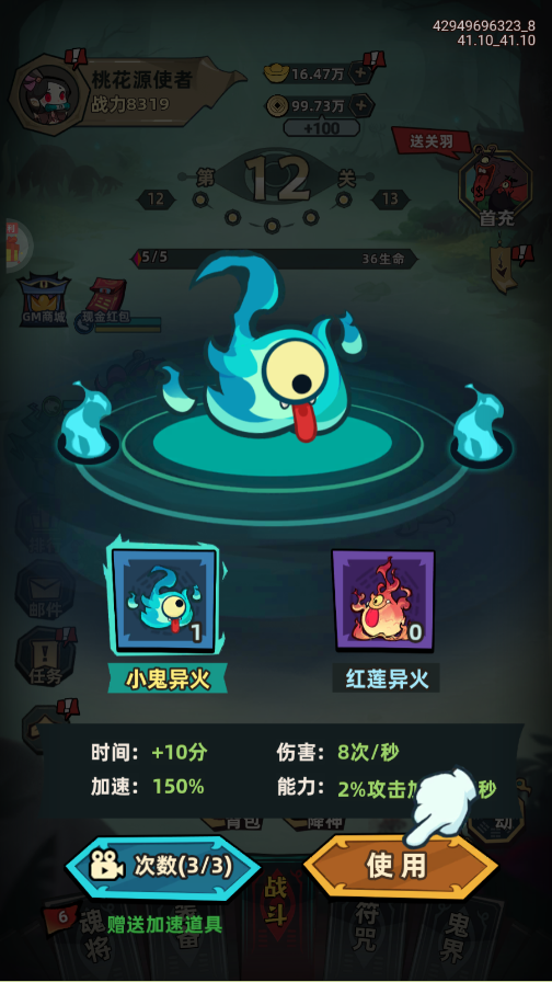 1、进入游戏之后每日可以开启三次自动攻击,释放双手