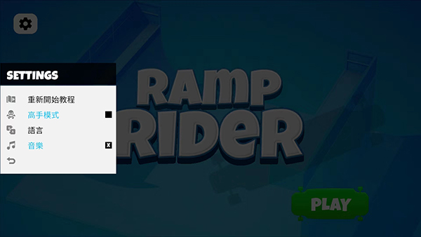 1、打开坡道滑板游戏,进入游戏主界面,首先我们选择左上角的【齿轮】图标进入设置界面。