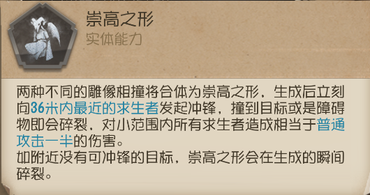 ③ 在板区博弈时,可以用雕像的一次碰撞和雕刻家的普通攻击对求生者造成伤害,二阶时甚至可以变成雕像的碰撞加【崇高之形】的碎裂加雕刻家的普通攻击,能直接将求生者打倒在地。