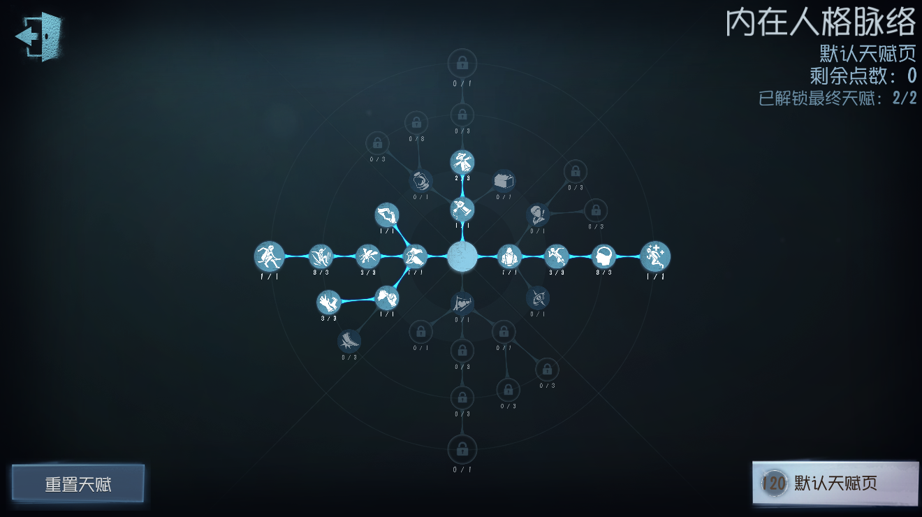 这套天赋是求生者最为常用的天赋,【破窗理论】+【膝跳反射】能够很好的让我们拉开与灵柩之间的距离。【不屈不挠】可以提高倒地后自愈和移动的速度,帮助我们快速自愈和爬地窖逃脱。点出三层【求生意志】可以加快被牵气球时挣扎的速度,防止监管者强行将我们挂在破译进度很多的密码机附近,在一些特殊地形也可以配合队友从气球上挣扎下来。