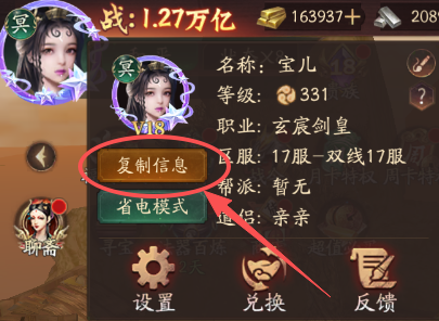 一、新手进游戏按照指引过主线任务,然后点即头像,复制信息