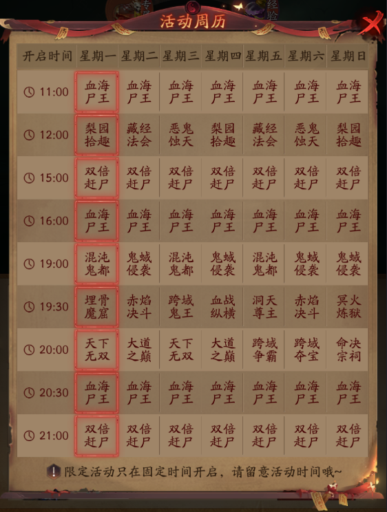 跟着对应时间完成活动任务
