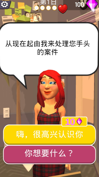 1、游戏中,玩家将会和自己的秘书一起解决各种案件。