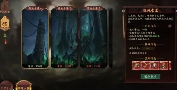 混沌古墓通关可获得大量经验、极品装备和强化石等。