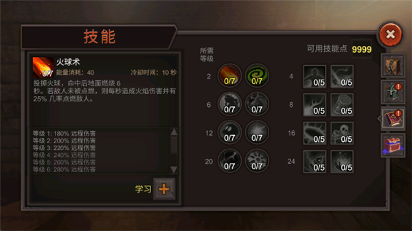 6、提升等级后,我们可以分配自己的属性,学习全新的技能。