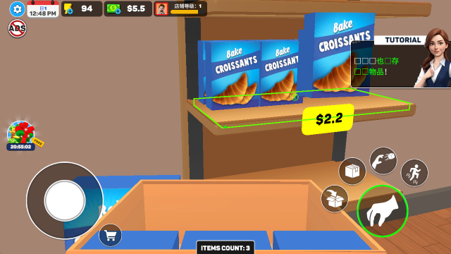 2、在《面包店超市模拟》中,您的职责范围从在货架上装满新鲜农产品和美味小吃,到为超市 3D 买家提供友好的服务。